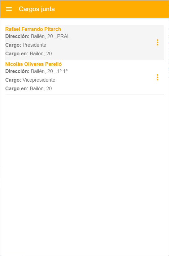 En esta opción se muestran los cargos de la junta de la comunidad o macrocomunidad.