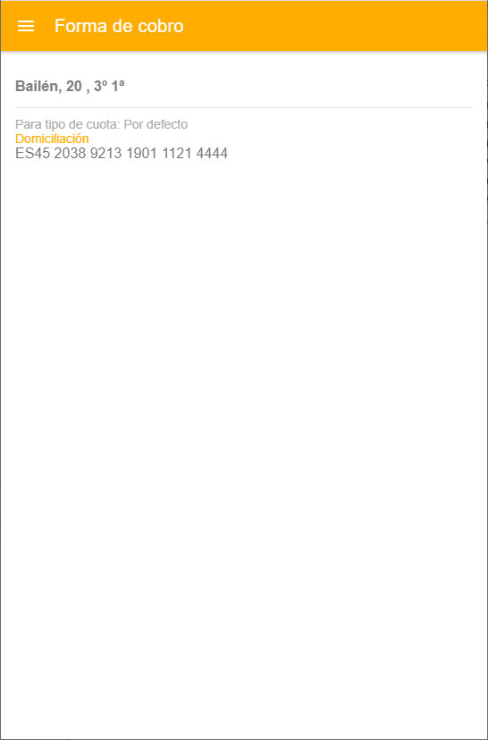 Se muestran las formas de cobro de recibos establecidas para ese propietario.