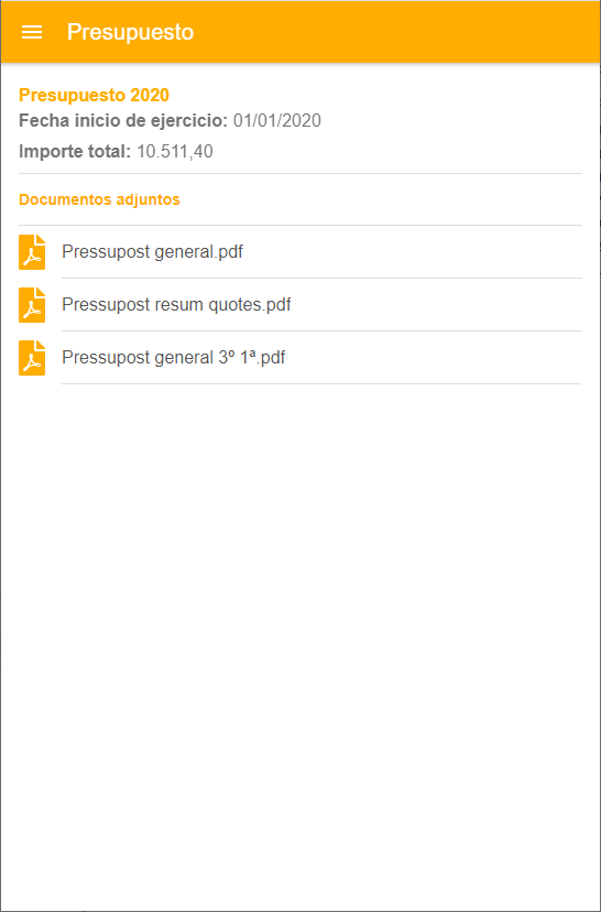 Pulsando sobre los documentos adjuntos, puede verse el contenido del presupuesto.