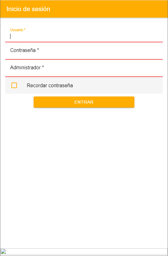 Al abrir Adminet APP se muestra la pantalla de inicio de sesión, en la que debe identificarse, del mismo modo cómo hace al acceder a la aplicación Adminet para escritorio de Windows.