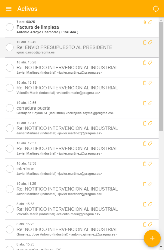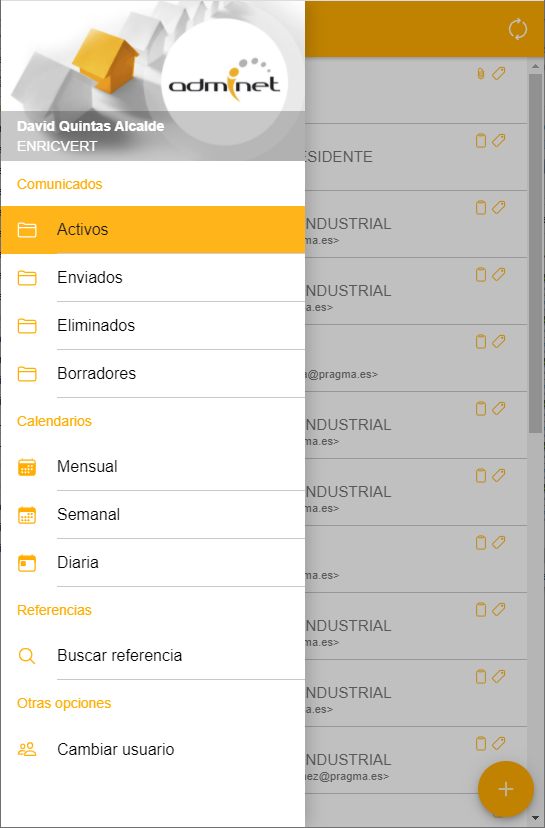 Al entrar, la primera pantalla que se muestra es la de los comunicados activos.