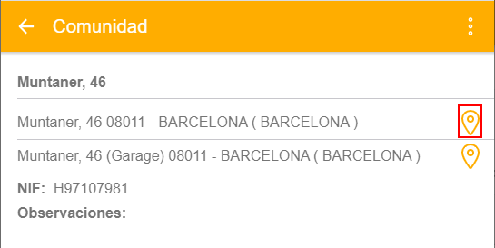 Pulsando el dibujo de localización asociado a las direcciones, se mostrará esa dirección en el mapa con la aplicación que tenga establecida.