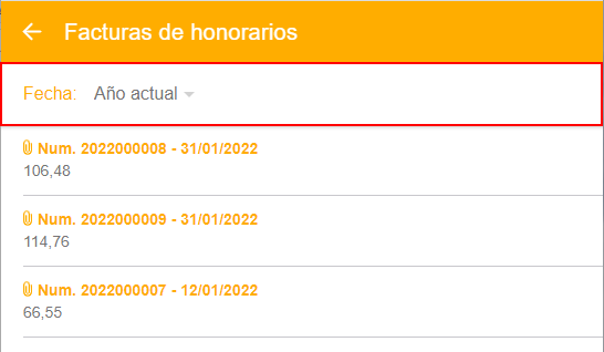 Pulsando sobre cualquier lugar del cuadro de una factura, se abrirá el documento adjunto con la aplicación que tenga activada en su dispositivo.