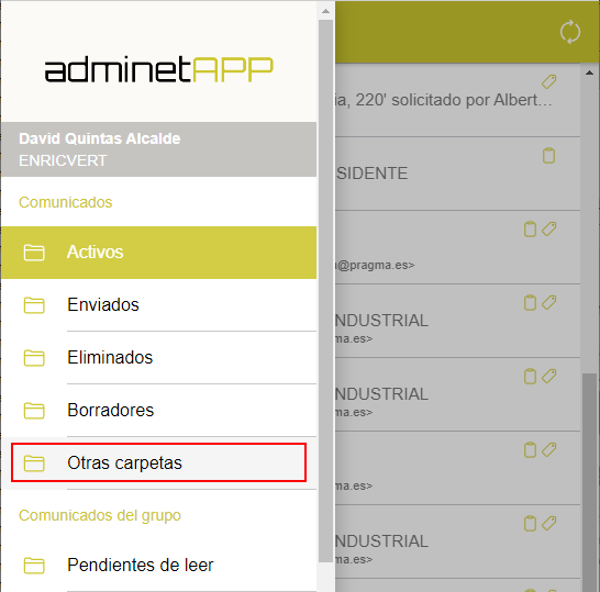Ver comunicados de otra carpeta