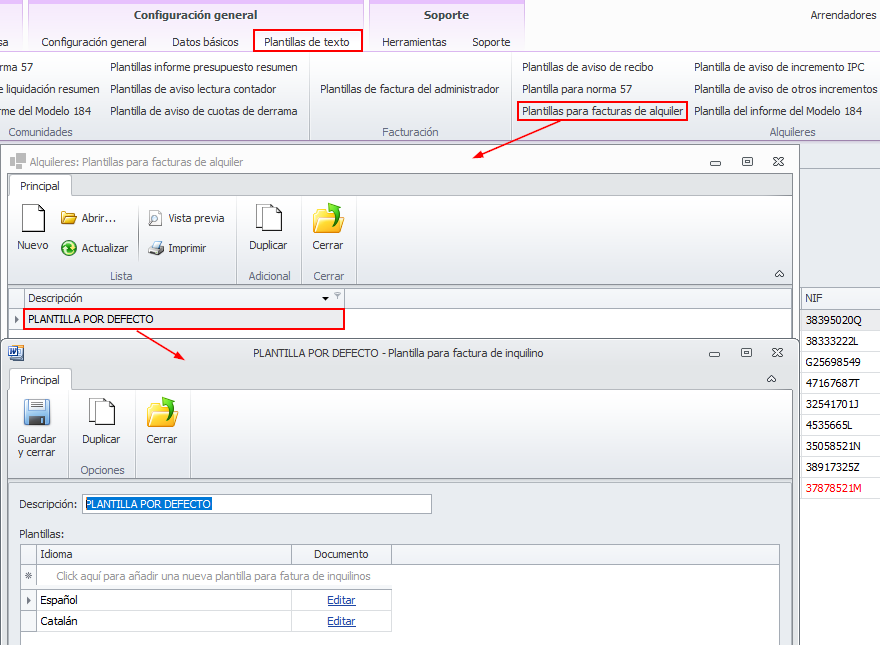 Si lo desea, tiene la posibilidad de incluir este dato dentro del formulario de la factura de alquiler. Para añadirlo, debe acceder a las plantillas de facturas de alquiler.