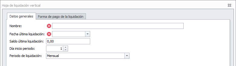 Fecha última liquidación periódica: El programa guardará en esta casilla la fecha de la última liquidación que haya emitido a través del proceso Emitir liquidaciones.