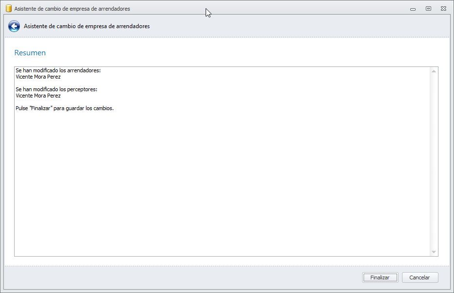 Se cambia la empresa administradora en la ficha del arrendador y sus perceptores de reparto.