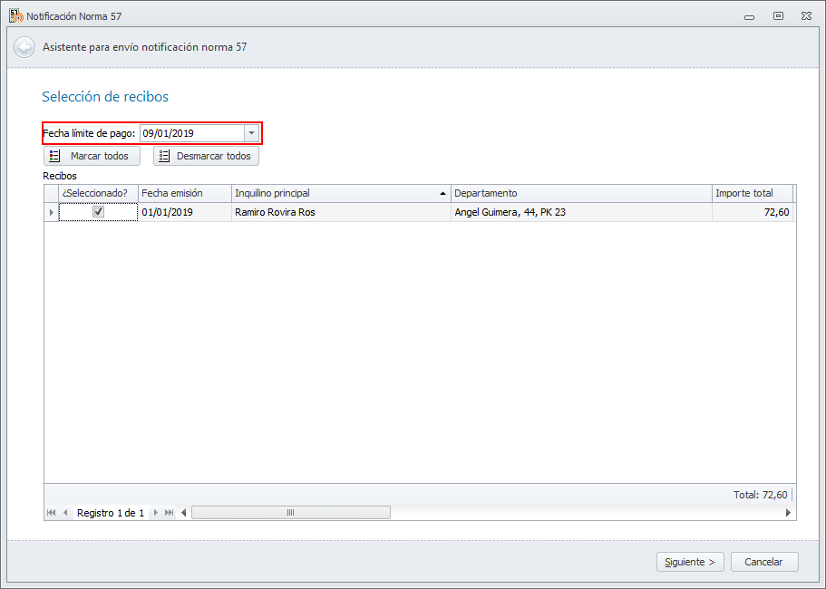 En el siguiente paso debe seleccionar y comprobar los destinatarios a los que se enviarán las notificaciones con las cartas de pago.