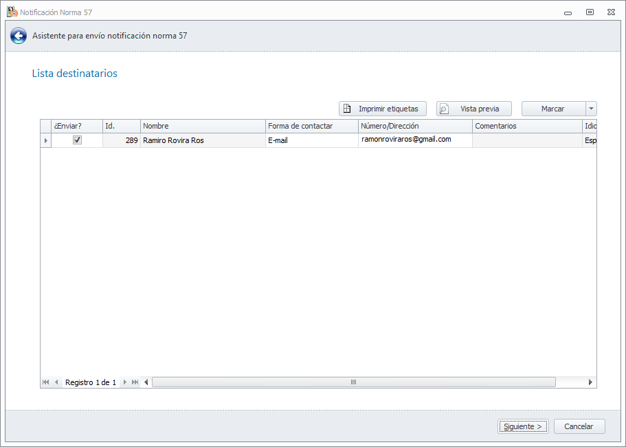 Al finalizar este asistente, se imprimirán las cartas de pago Norma 57 para los envíos postales y se enviarán por email a aquellos destinatarios que así lo tengan marcado.