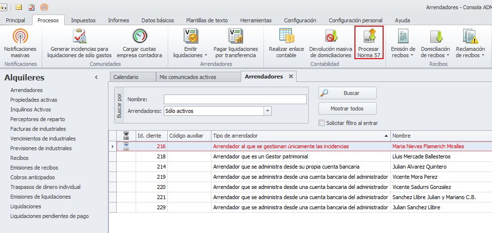 Activar forma de cobro Norma 57 en contratos de alquiler