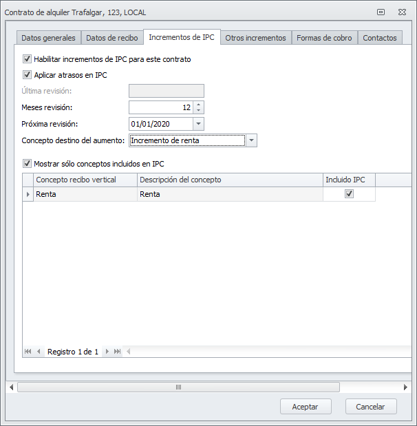 Configuración de incrementos de renta