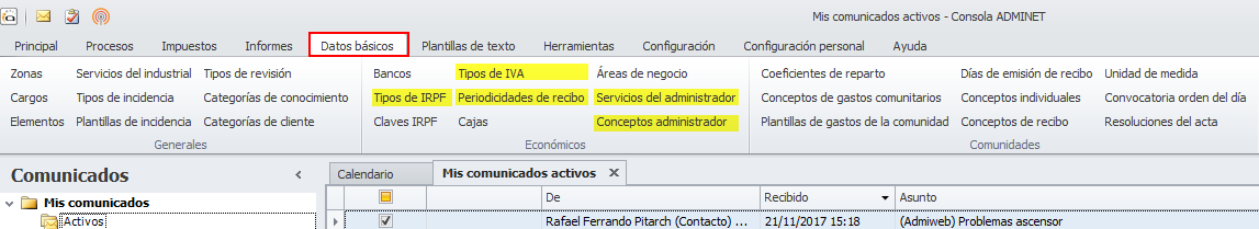 Acceda al menú Datos básicos y fíjese en el cuadro de datos Económicos.