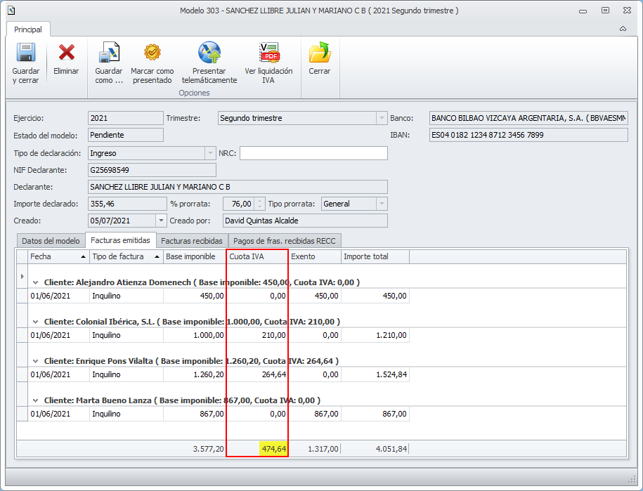 El importe de la cuenta 477 corresponde a la cuota de IVA de las facturas emitidas. Puede verse en la lista de Facturas emitidas del propio modelo.