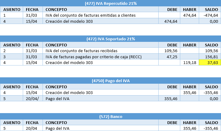 El IVA soportado queda a cero cuando se contabiliza el modelo 303.