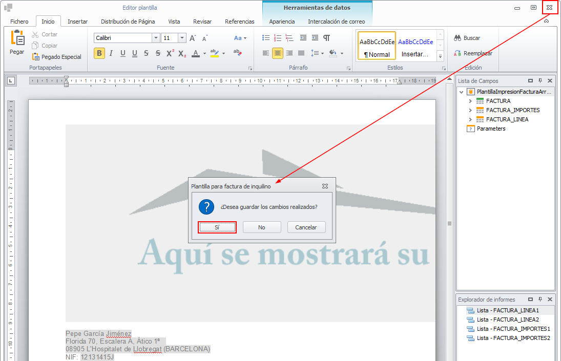 Cierre la ventana con la cruz de la parte superior derecha y guarde los cambios realizados.