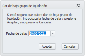 Aprobar todas las liquidaciones en las que participa. Si la hoja de liquidación en la que se encuentra el grupo, tiene alguna liquidación pendiente de aprobar, no se podrá dar de baja el grupo.