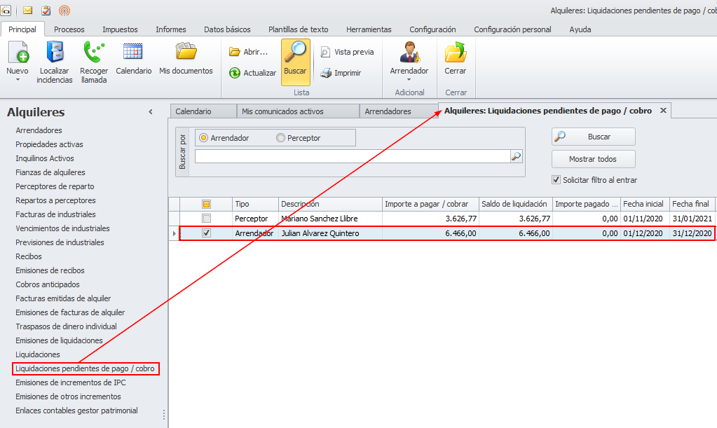 Asegurarse de que no tenga ningún movimiento pendiente de liquidar. Esto incluye cobros y devoluciones de recibos y cobros/pagos del arrendador.