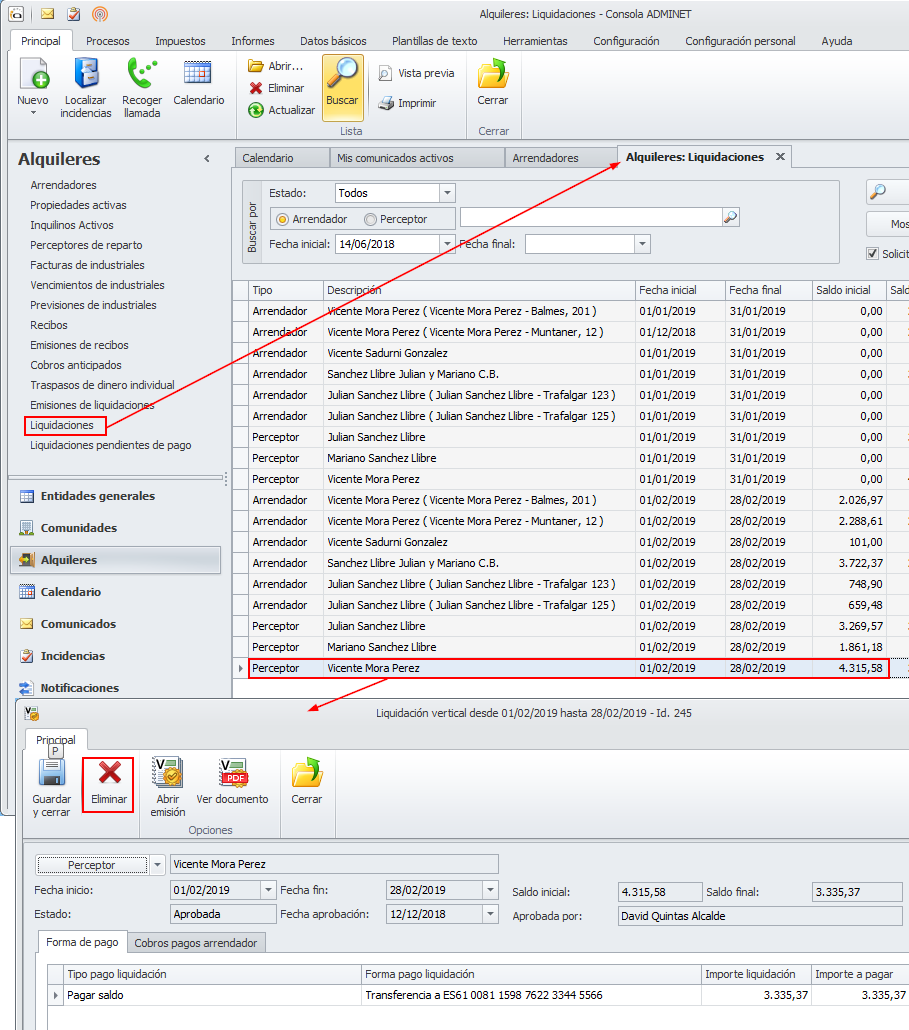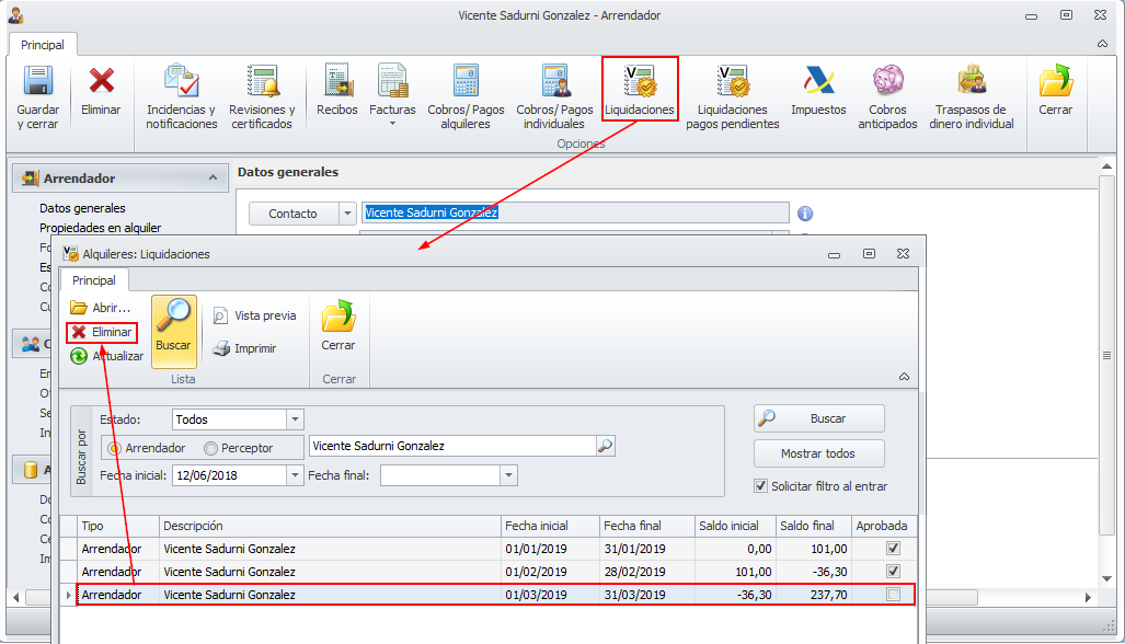 Eliminar liquidaciones de alquileres