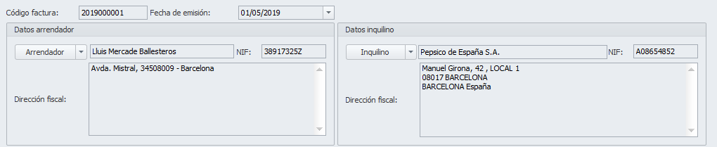 Si ya está emitiendo facturas a otros inquilinos, debemos entender que la ficha del arrendador está correctamente configurada. En caso contrario debe comprobar su configuración, tal y como se indica en el apartado Configuración de este mismo documento.