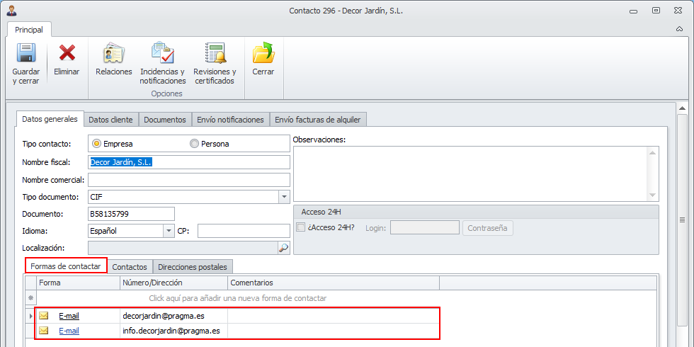 Configurar la ficha del inquilino y del contacto para que pueda recibir facturas de alquiler