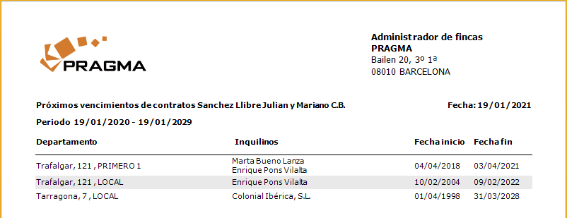 Informe "Vencimiento contratos de alquiler"