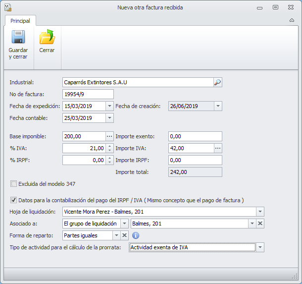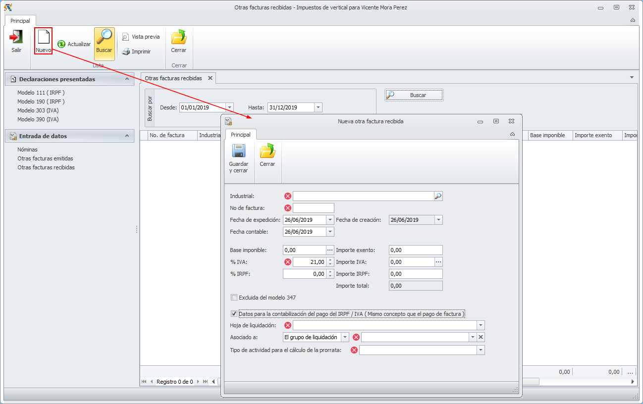 Introducción de otras facturas recibidas