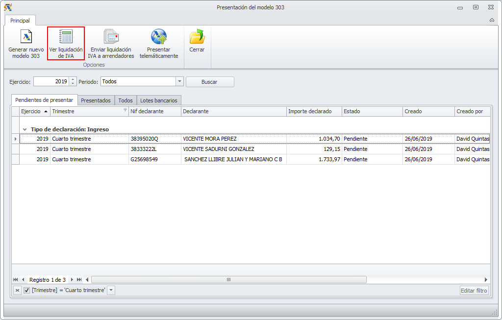El procedimiento que se sigue para generar el modelo 303 del cuarto trimestre es el mismo que para los otros 3 trimestres. La mecánica del asistente es la misma.