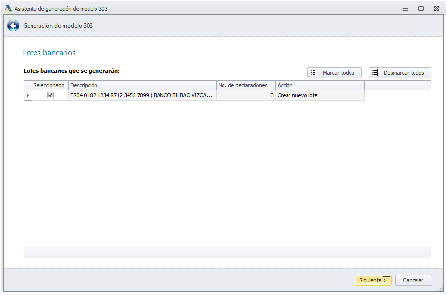 También puede configurarse el programa para efectuar el envío de modelos a la entidad bancaria por lotes. Haga clic aquí para obtener más información sobre la presentación por lotes.
