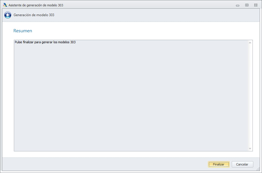 Con la siguiente ventana se confirma la finalización del proceso de generación de los modelos 303.
