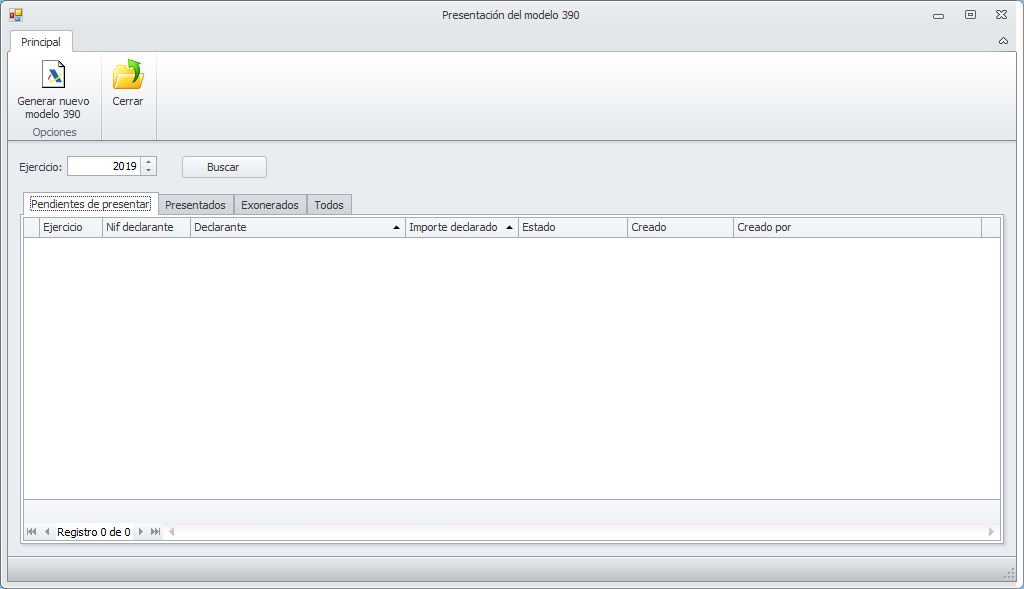 Se abrirá la siguiente ventana, desde donde se gestionará todo el proceso de preparación, comprobación y presentación del modelo, así como el envío de notificaciones a los declarados.