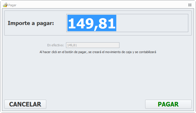 Haga clic en Finalizar para terminar de registrar el pago o cobro del saldo.