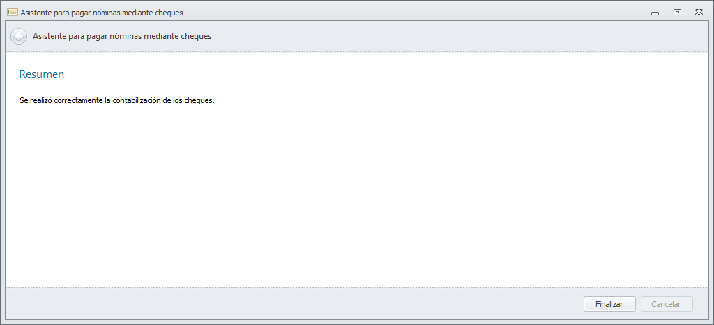 Al finalizar la impresión de todos los cheques, se realizará la contabilización del pago.