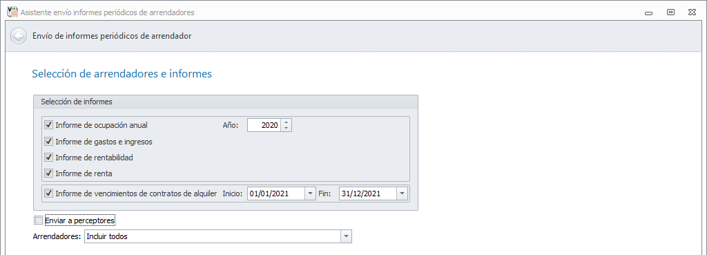 Se permite parametrizar qué informes enviar y el periodo.