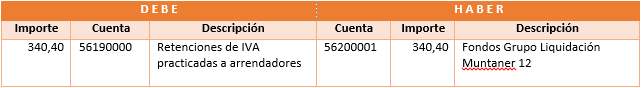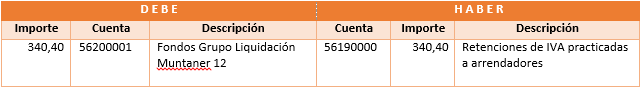 La retención del IVA se realiza en el proceso de emisión de facturas de alquiler. Sólo si la factura tiene IVA, registra un movimiento interno con dos apuntes: