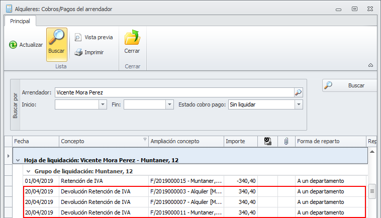 Cómo se muestran las retenciones de IVA en la liquidación del arrendador