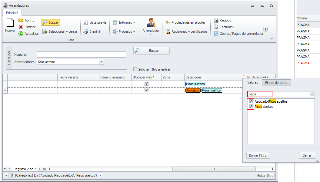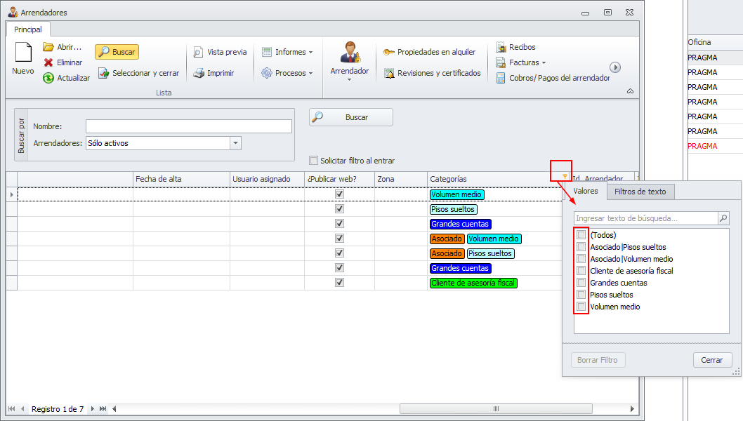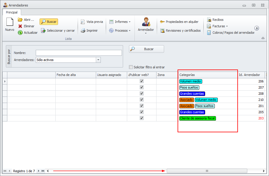 En esta misma lista dispone de una columna con las categorías a las que pertenece el arrendador.