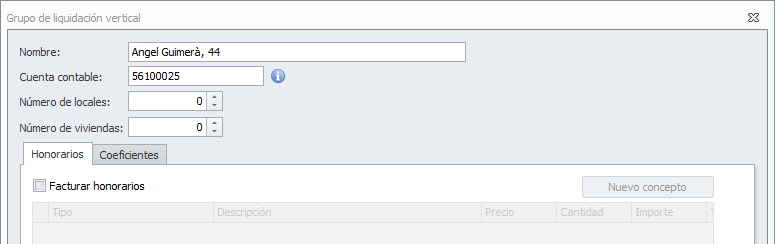 Asígnele nombre al grupo. Si tiene activado el enlace contable debe indicar también la cuenta para fondos del grupo. No hace falta que configure los honorarios.