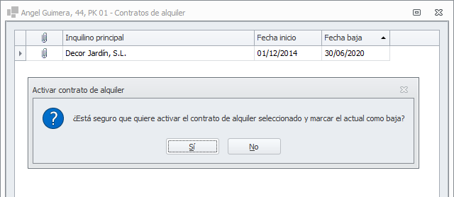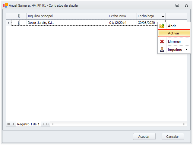 Escoja el contrato más reciente, que debe corresponder con el que dio de baja en el arrendador antiguo. Haga clic derecho sobre él y escoja Activar.