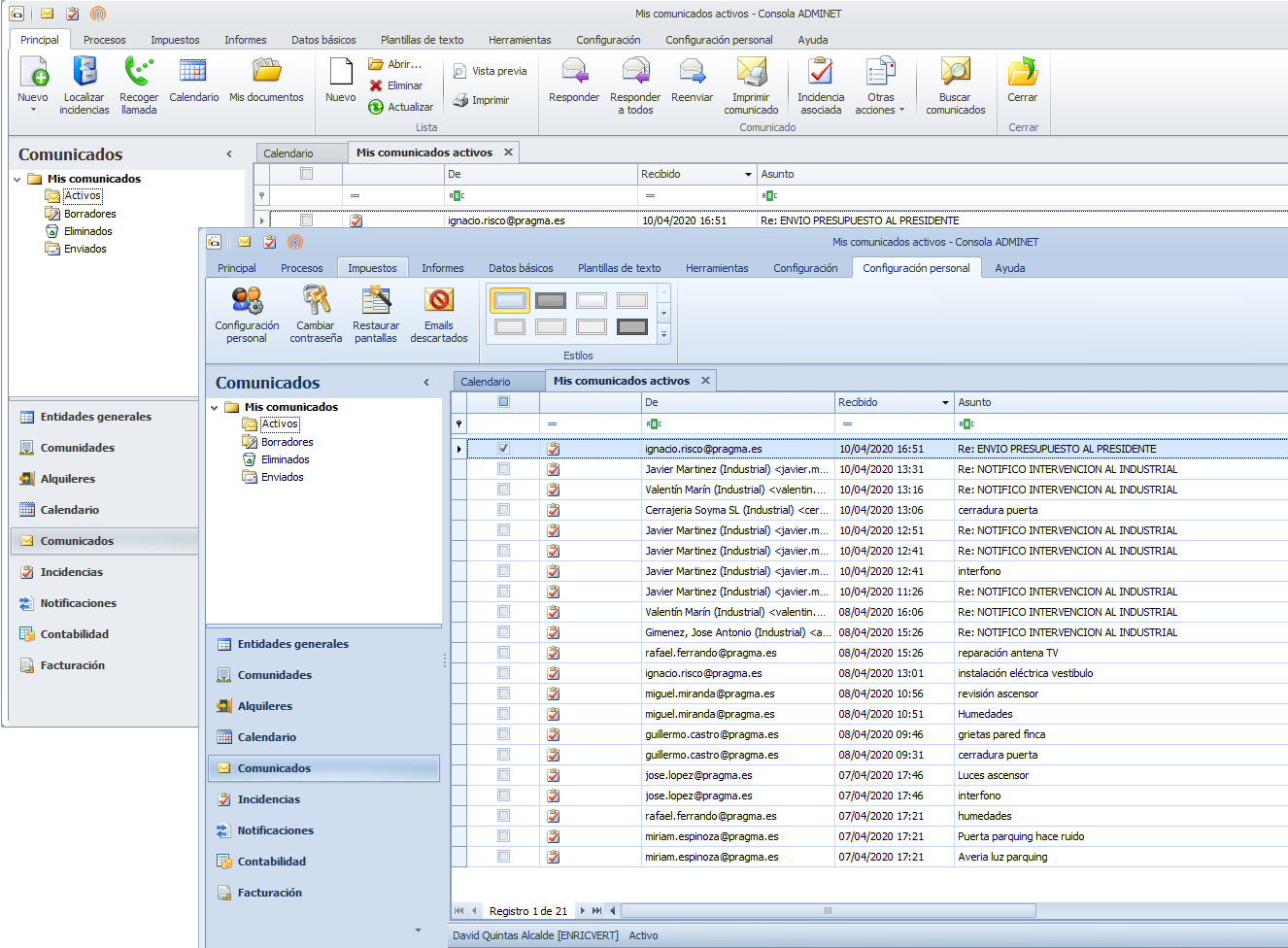 Adminet se puede abrir en un mismo ordenador tantas veces como desee. Incluso puede abrirlo con el mismo nombre de usuario. Este recurso le puede ser especialmente útil cuando en su trabajo ordinario se suceden interrupciones que requieren realizar consultas ajenas a ese trabajo ordinario.