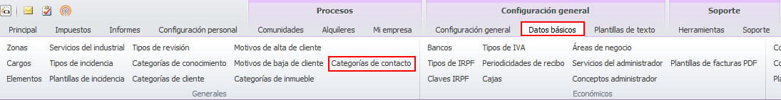 En el apartado Datos básicos encontrará el acceso a la lista para personalizar las categorías que después asignará a los inmuebles.