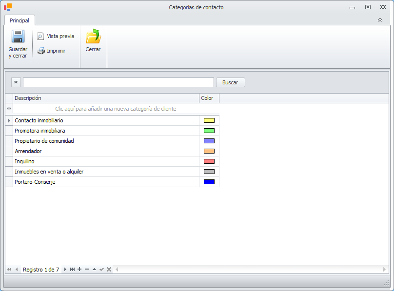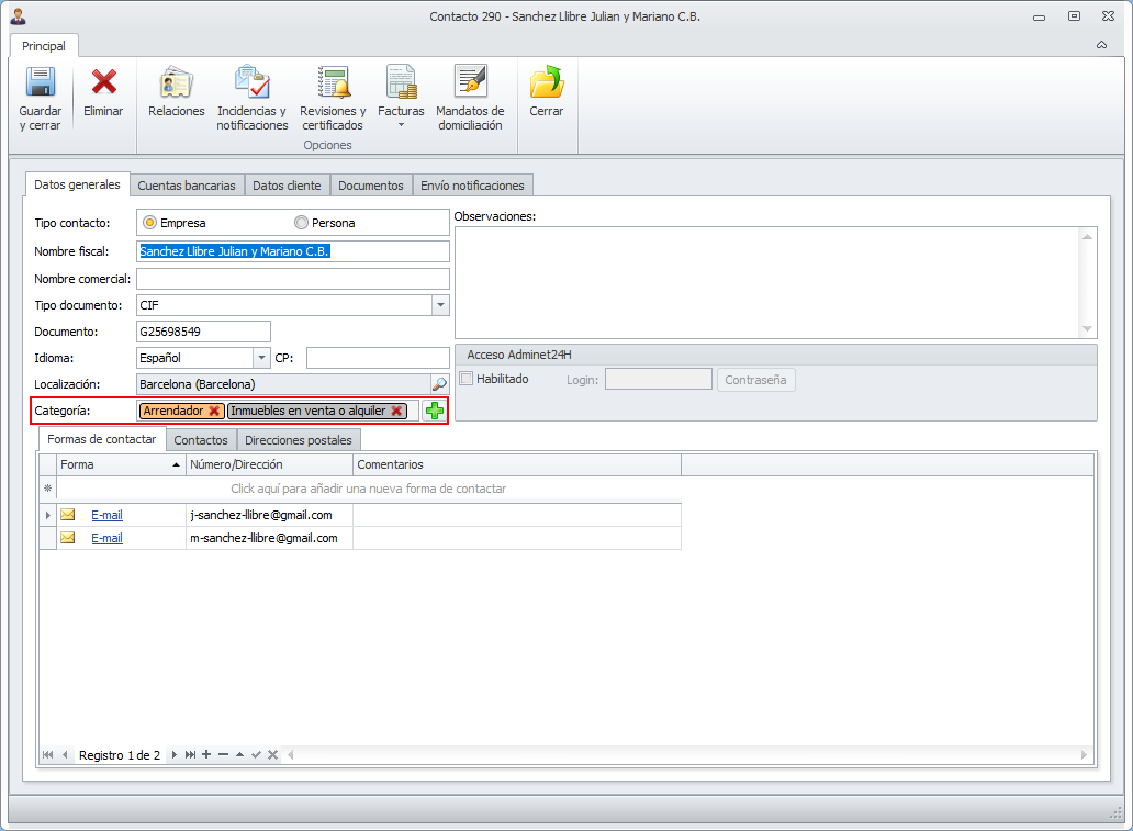 La ficha de contacto general permite identificarlo con diferentes categorías, que son configurables por parte del administrador y pueden hacer referencia a diferentes criterios de clasificación. Por ejemplo, pueden indicar: