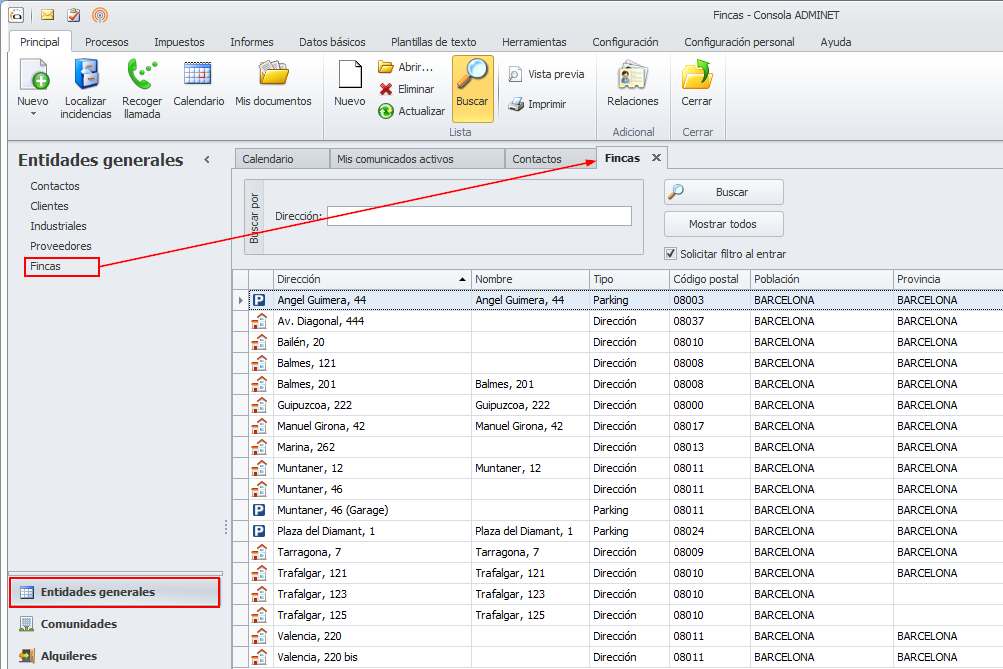 Las fincas y departamentos se encuentran en el apartado Entidades generales de la aplicación.