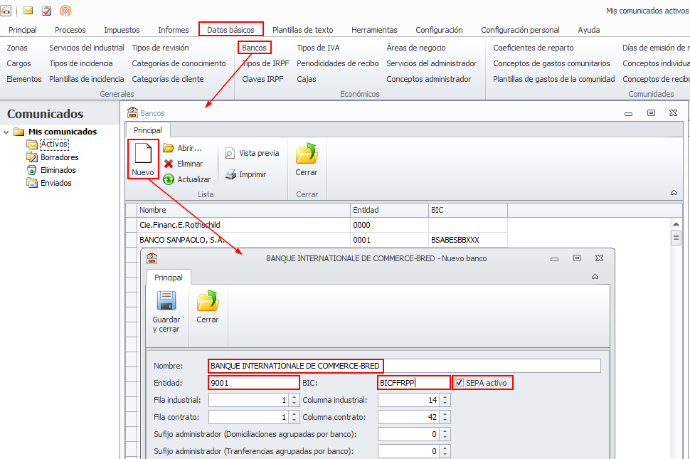 Puede utilizar cuentas de otros países de la Unión Europea para introducirlas en las fichas de clientes, comunidades, copropietarios, arrendadores, inquilinos, industriales e incluso en la ficha del administrador.
