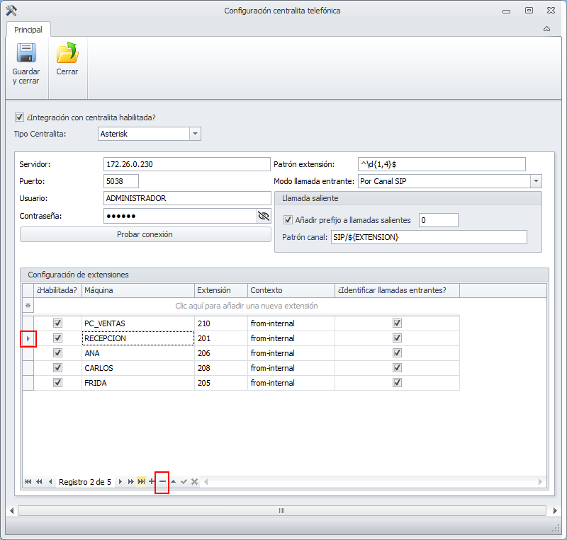 A continuación, deberá introducir el nombre de cada una de las máquinas y extensiones telefónicas con las que estarán vinculadas.