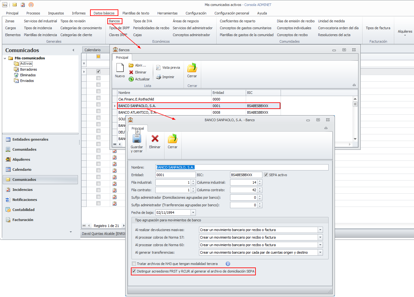 Para facilitar que los archivos adquieran el formato que le pida su banco, se ha incorporado una casilla en la ficha del banco que permite desactivar esa distinción y que todas las domiciliaciones se gestionen como recurrentes.