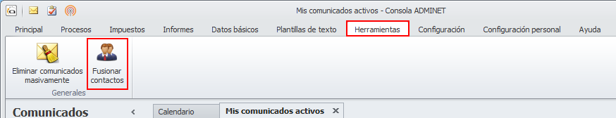 Acceda al menú Herramientas y haga clic en el botón Fusionar contactos.