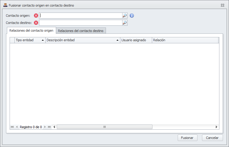 Identifique en la casilla Contacto destino el contacto que desea que reciba la información del Contacto origen.