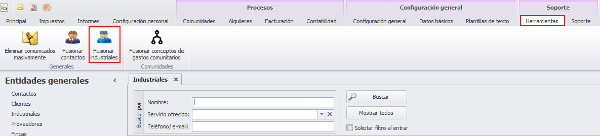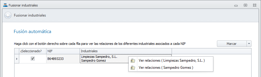 Esta herramienta permite fusionar dos industriales que están duplicados y en realidad son la misma empresa.