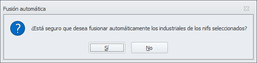Haga clic en Fusionar. Se le solicita conformidad para iniciar el proceso de fusión. Verifique bien los datos y haga clic en Sí, si desea continuar.