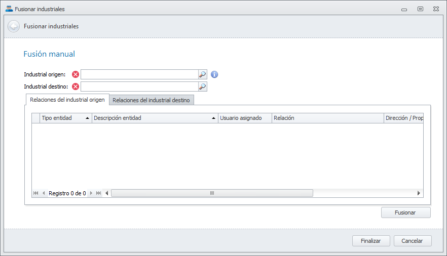 Tras esto, la fusión se ha completado. El Industrial origen ya no existe y toda su información ha sido transferida al Industrial destino.